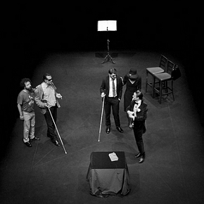 La stanza sarà presto abitata da due coppie di ciechi, i giocatori, e dall’unico vedente (il bravissimo Sebastian Barbalan) che dirigerà la partita come un croupier, o come il presentatore di un circo che tenta di ammaestrare. I giocatori dovranno infatti riuscire a dominare le loro emozioni.
