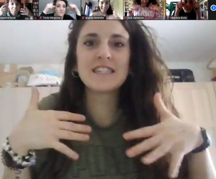 Molto interessante è stato osservare i partecipanti nel loro diversissimo modo di interpretare le sollecitazioni della Gribaudi. Ciascuno degli spazi, offerti ai nostri occhi dalla piattaforma Zoom, è stato abitato da ognuno dei ragazzi e delle ragazze coinvolti in modo personale, con l’esigenza assoluta di mettere alla prova il proprio corpo, confrontandolo con quello degli altri, ed esplorandone tutte le potenzialità, spesso nascoste dall’abitudine.