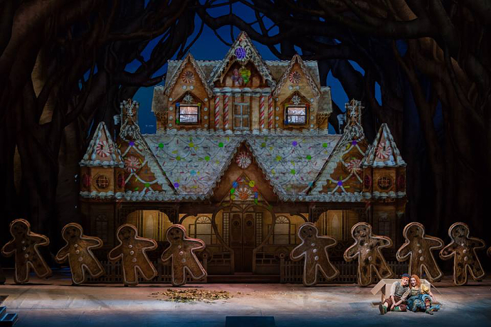 Il libretto fa riferimento alla celeberrima fiaba dei Grimm, e infatti l’opera si apre all’interno della casa dei due ragazzi, dove abitano con i genitori, il fabbricante di scope Peter e sua moglie Gertrude. La donna, come sappiamo, non tratta benevolmente i due fanciulli. Arrabbiata perché li vede gioiosamente danzare in tempi duri di carestia, prima rompe la brocca del latte, poi, infastidita per la sua dabbenaggine, manda i bambini a raccogliere fragole nella foresta.