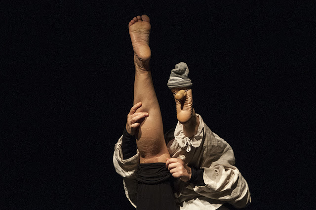 Quando nel 1990 (o era forse il 1989…) ci ha invitato il festival Arrivano dal Mare, non capivamo perché un festival teatrale di marionette ci invitasse, essendo noi dei mimi. Quattro anni dopo, quando fummo invitati dal London Mime Festival, capimmo invece che eravamo diventati burattinai. Forse è stata questa crisi di identità ad alimentare la nostra ispirazione per creare una fusione tra mimo e pupazzi, che man mano stava dando vita a “figure” fatte con i piedi, le ginocchia, lo stomaco, il gomito, il viso…, dando il via a un nuovo stile di “burattini corporei” che oggi è molto utilizzato.