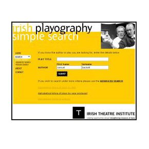 E’ così possibile, ad esempio, effettuare ricerche ed ottenere informazioni dettagliate su compagnie, teatri, località e personale del teatro stesso mentre con Irish Playography, possiamo interrogare, a partire dal nome dell’autore o dal titolo della pièce, il data base degli spettacoli prodotti in Irlanda a partire dal 1904. E’ in corso di avviamento anche l’Irish Theatre Artists, una sorta di annuario che prevede la catalogazione di circa 2000 operatori teatrali, dagli attori alle maestranze.