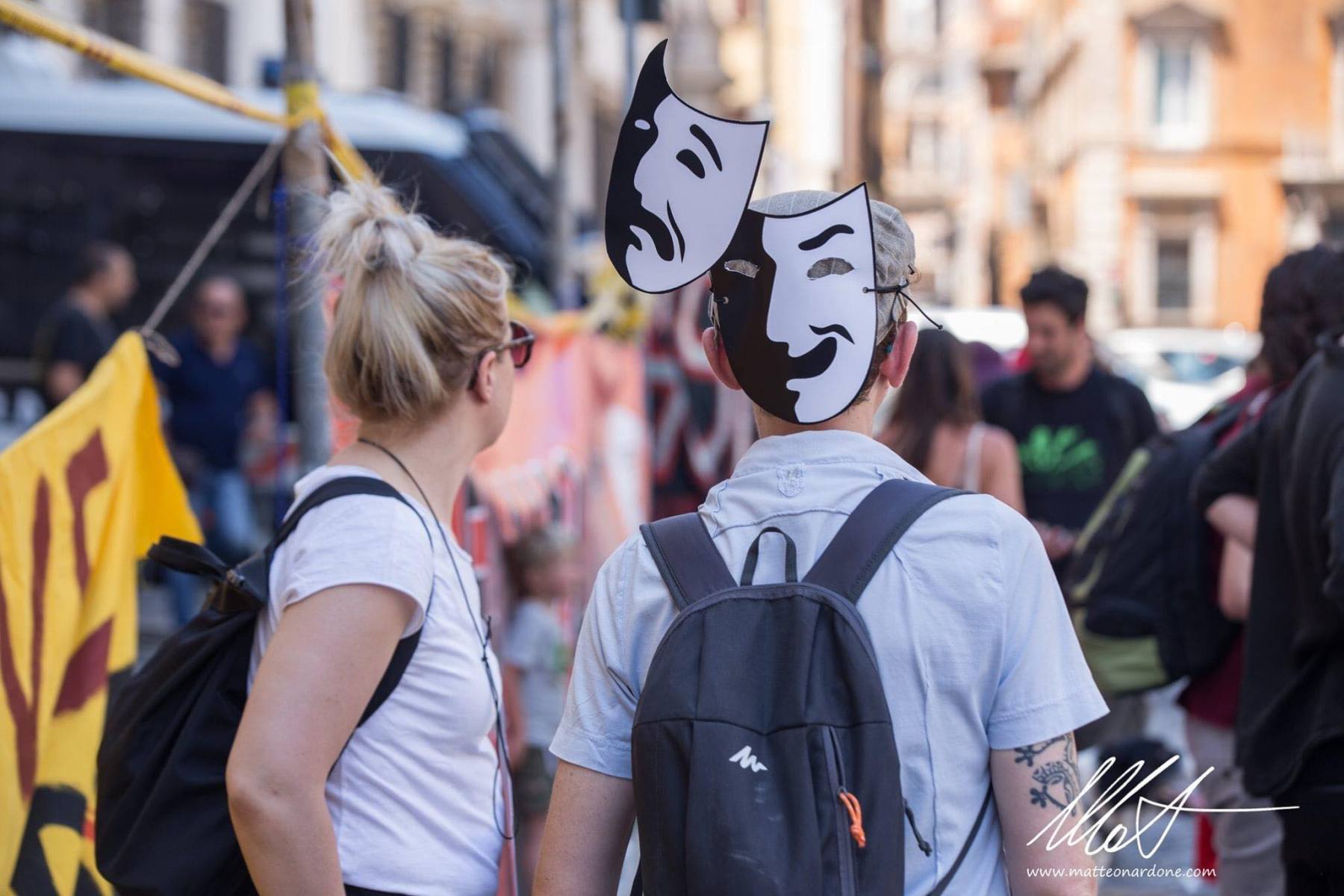 La manifestazione nazionale dello spettacolo che si è svolta a Roma sabato scorso, 27 giugno, in piazza Santissimi Apostoli, ha riunito moltissimi gruppi autonomi di lavoratori e lavoratrici dello spettacolo. Ne citiamo solo alcuni: Attrici Attori Uniti, Facciamolaconta, Approdi, Adi Cobas, Intermittenti Spettacolari, Lirica-Muta, Mujeres nel teatro, Spin OFF, Lavoratori e Lavoratrici dello Sperracolo di Piemonte, Campania, Abruzzo, Toscana e tanti altri da tutta Italia.
